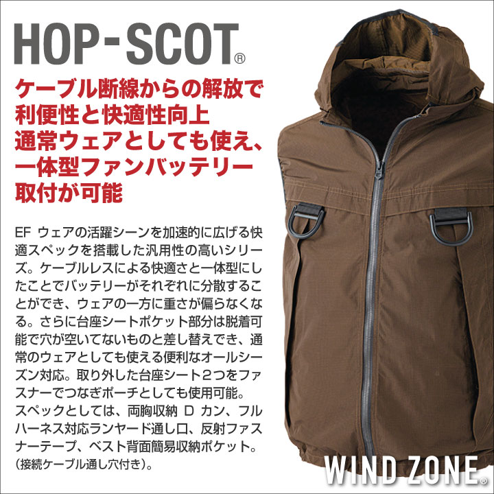 HOPSCOT-ホップスコット- WIND ZONE WZ ハイクオリティケーブルレスフードベスト 商品の特長 ますます涼しく着心地よく、快適性アップ!! 言うなれば涼風を纏う夏常備服。
