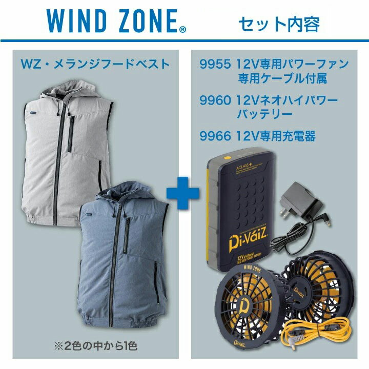 服単品は→コチラ セット内容 1862 メランジフードベスト 9937 ケーブルレスファンバッテリーセット 素材 ポリエステル100% カラー 杢コン ・ 杢シルバー サイズ M ・ F ・ XL ・ XXL 関連商品 空調服はこちらです。