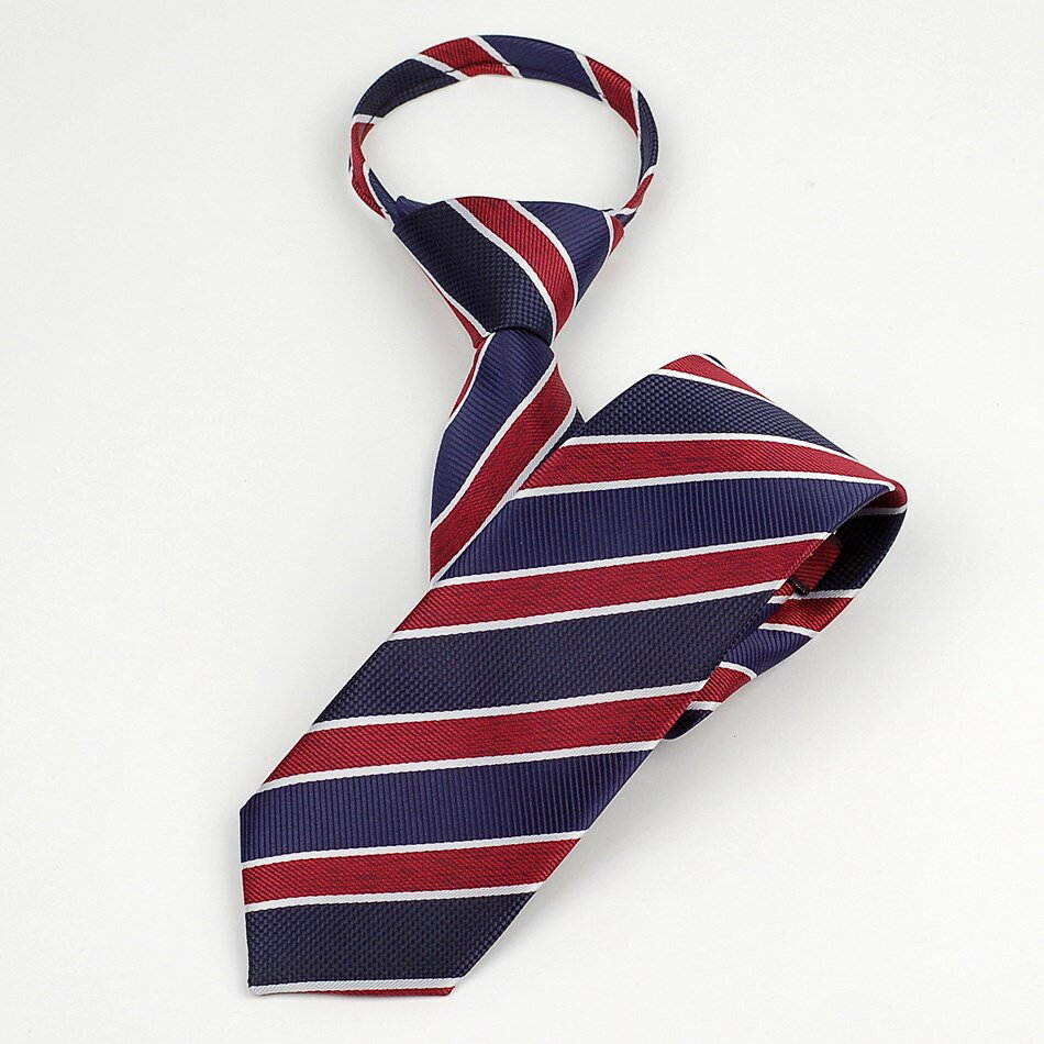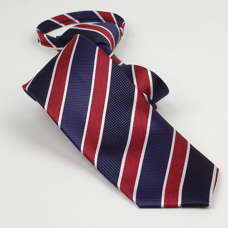 ワンタッチネクタイ ネイビー&レッド ストライプ レジメンタル ネクタイ クイック タイ 大剣幅 7cm ntm6174