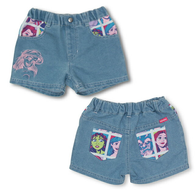 こども 子ども服 ボトムス ショーパン 短パン 人気キャラクターデザイン ディズニープリンセス カラフル おしゃれ 可愛い かわいい かっこいい 総柄切替え 派手かわ 個性的 ポップ POP ディズニーヴィランズ 美女と野獣 ベル リトルマーメイド アリエル 塔の上のラプンツェル アースラ ゴーテル ガールズコーデ ★