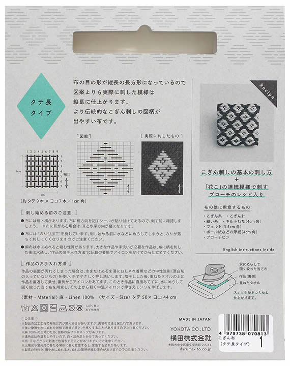 日本製 布の目の形が縦長の長方形になっているので図案よりも実際に刺した模様は縦長に仕上がるため、より伝統的なこぎん刺しの図柄が出やすい布です。